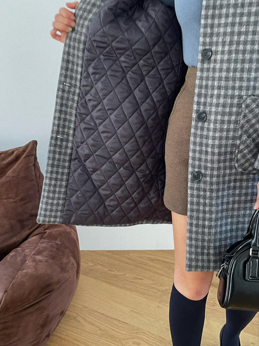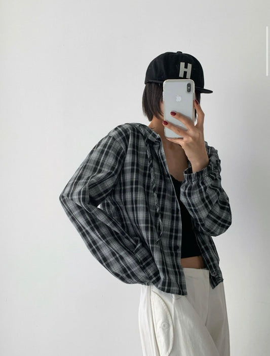 ํฌ๋กญ ์ฒดํฌ ํ๋์ ์ธ (Crop Checkered Hood Shirt)