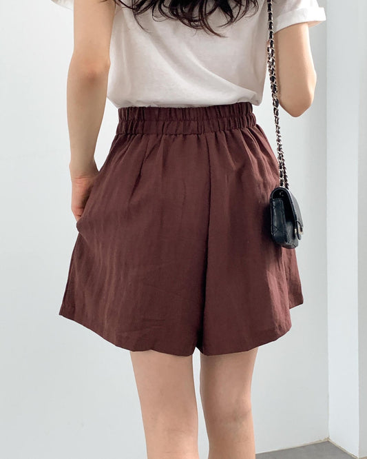 ๋ฌ์คํธ ํํฑ ๋ฐ๋ฐ์ง (Rust Pintuck Shorts)