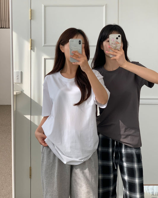 ๋ฉด ์คํ ๋ผ์ด๋ ๊ณ ํ (Cotton Span Round Neck T Shirt)